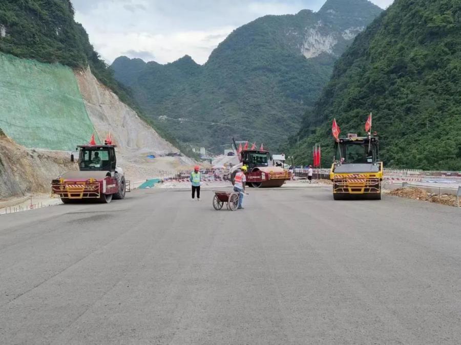 為做好天峨至巴馬高速公路第五合同段路面基層工程,建設(shè)公司在設(shè)備、工藝等方面取得新突破。攤鋪寬度打破新記錄,項(xiàng)目使用了“港珠澳大橋號”同款的陜西中大大寬度大厚度攤鋪機(jī),攤鋪寬度達(dá)16.4米,創(chuàng)造了建設(shè)公司水穩(wěn)路面單幅單機(jī)最大攤鋪寬度記錄。攤鋪動(dòng)力展現(xiàn)高強(qiáng)度,項(xiàng)目還投入國內(nèi)技術(shù)領(lǐng)先的三一大功率水穩(wěn)攤鋪機(jī),設(shè)備攤鋪能力1300t/h、攤鋪寬度13.5米,具備動(dòng)力強(qiáng)勁、抗離析等功能。攤鋪適應(yīng)性取得新進(jìn)展,機(jī)器兩側(cè)伸縮功能可有效適應(yīng)天峨至巴馬高速公路橋隧比高、路寬變化大的施工要求,先進(jìn)機(jī)械的施工效果得到業(yè)主和監(jiān)理部門的高度認(rèn)可。