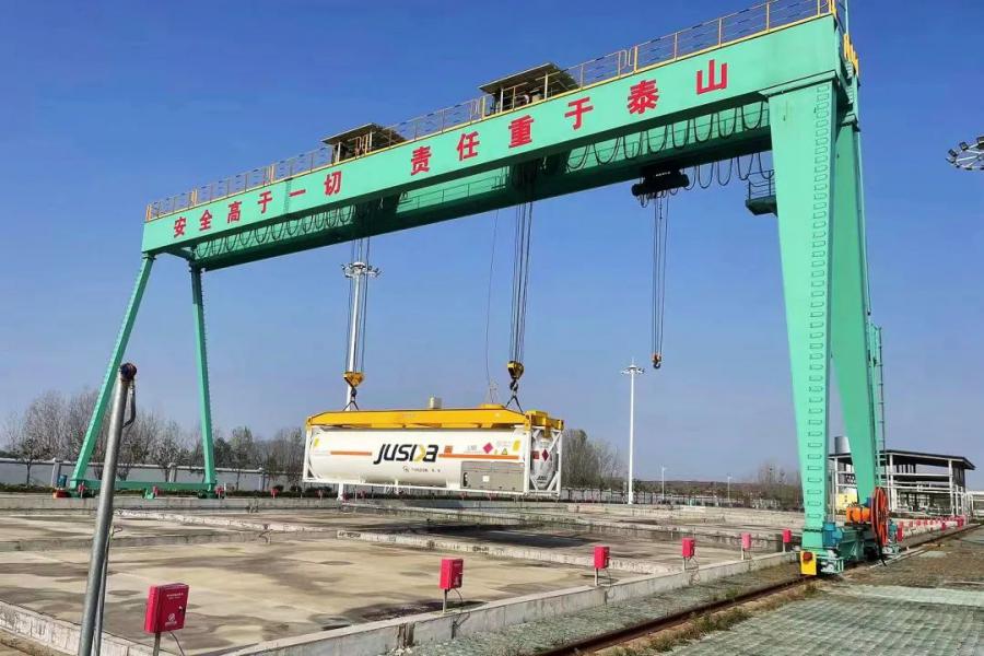 該中心建有1萬立雙金屬全容罐及單層可存放60個罐箱的堆場,配套建設(shè)龍門吊等基礎(chǔ)設(shè)施。通過智能化運營體系,中心實現(xiàn)“可中轉(zhuǎn)、可儲存、可接卸、可外輸”的一體化高效運作模式。