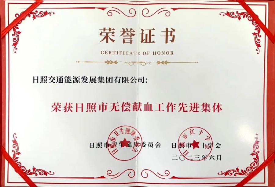 6月14日,日照市舉辦“讓愛升起 照亮生命”2023無償獻(xiàn)血暨造血干細(xì)胞捐獻(xiàn)頒獎(jiǎng)典禮,集團(tuán)被評(píng)為“日照市無償獻(xiàn)血工作先進(jìn)集體”榮譽(yù)稱號(hào)。