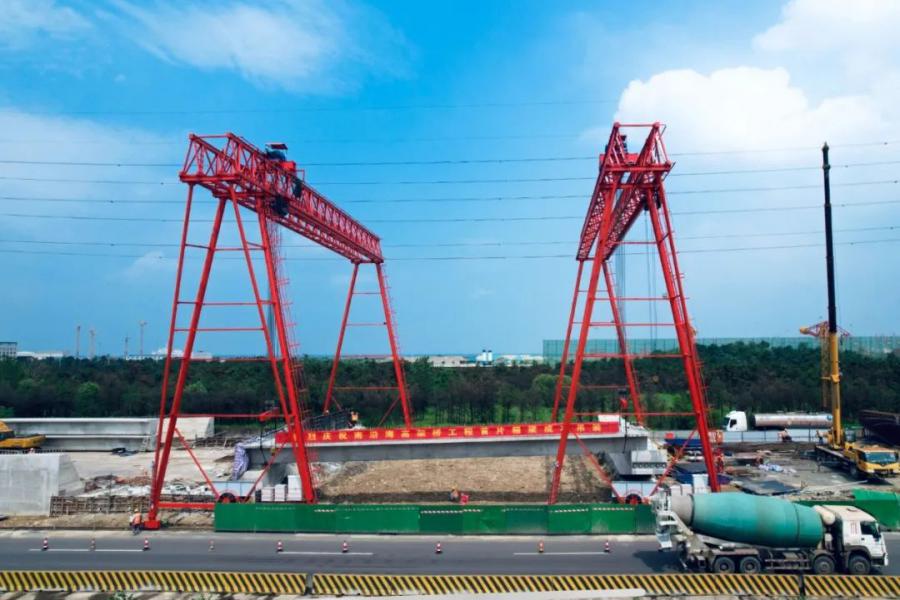 南沿海公路日鋼段高架工程項目起點位于龍王河互通右轉(zhuǎn)匝道接入口,終點位于安嵐大道與南沿海公路交叉口,是解決日鋼進港鐵路與南沿海公路立體交叉、優(yōu)化日照港嵐山港區(qū)公路集疏運體系的重點項目。項目共有25m、29.5m、30m、39.5m、40m箱梁549片,預(yù)制體量大,項 目地處繁忙重載交通區(qū)域內(nèi),架設(shè)難度高,項目部立足實際科學(xué)研判,采用跨墩龍門吊架設(shè)箱梁,提高箱梁安裝機動性,保證預(yù)制場生產(chǎn)效率與現(xiàn)場安裝速度相匹配。期間,項目部嚴格把控施工環(huán)節(jié),實時監(jiān)測設(shè)備工況,確保提梁、運梁、架設(shè)各工序安全高架銜接順暢。