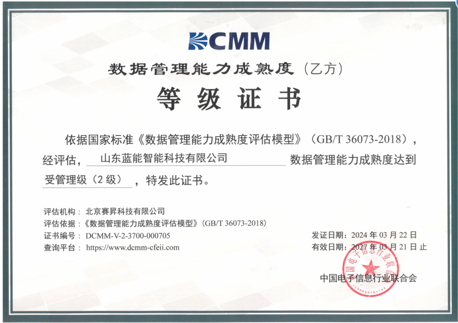 近日,集團(tuán)藍(lán)能科技公司順利通過DCMM數(shù)據(jù)管理能力成熟度二級(jí)認(rèn)證,這是繼公司入選“2023年度山東省大數(shù)據(jù)創(chuàng)新應(yīng)用優(yōu)秀解決方案”名單后,數(shù)字化轉(zhuǎn)型建設(shè)取得的新突破,標(biāo)志著公司數(shù)據(jù)管理體系理論與建設(shè)實(shí)踐通過國家標(biāo)準(zhǔn)檢驗(yàn)。