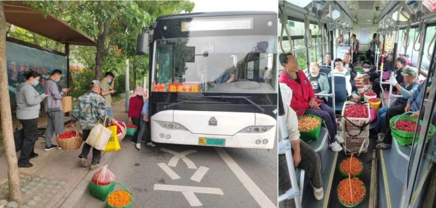 坐上“專車”的果農(nóng)們將新鮮采摘的櫻桃?guī)У匠鞘校赝局泄卉噹兂闪恕傲鲃?dòng)市場(chǎng)”,吸引更多的人品嘗鄉(xiāng)間美味,開創(chuàng)了“公交乘客上車買果菜回家”的新消費(fèi)場(chǎng)景。乘客紛紛點(diǎn)贊,這一舉措讓他們能在日常出行中順便選購(gòu)新鮮、實(shí)惠的櫻桃,既方便購(gòu)物,又幫助村民增收。
