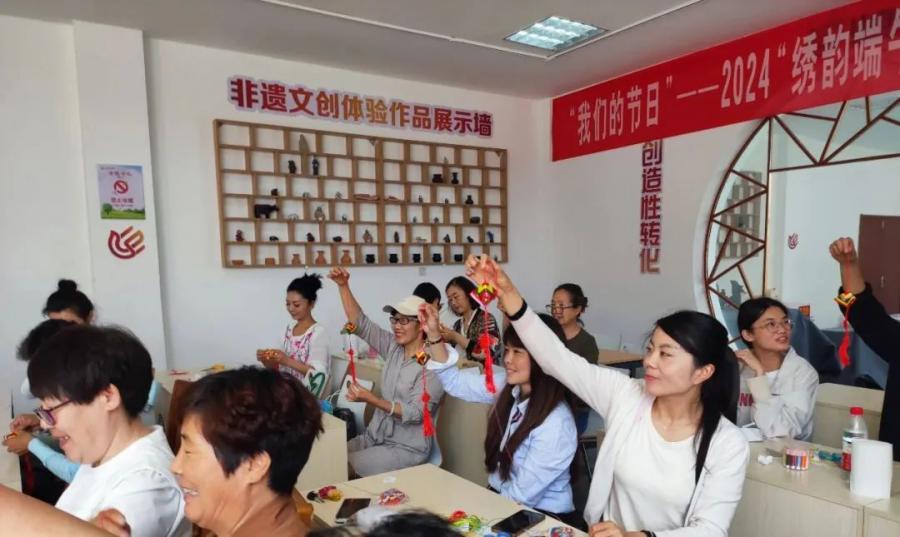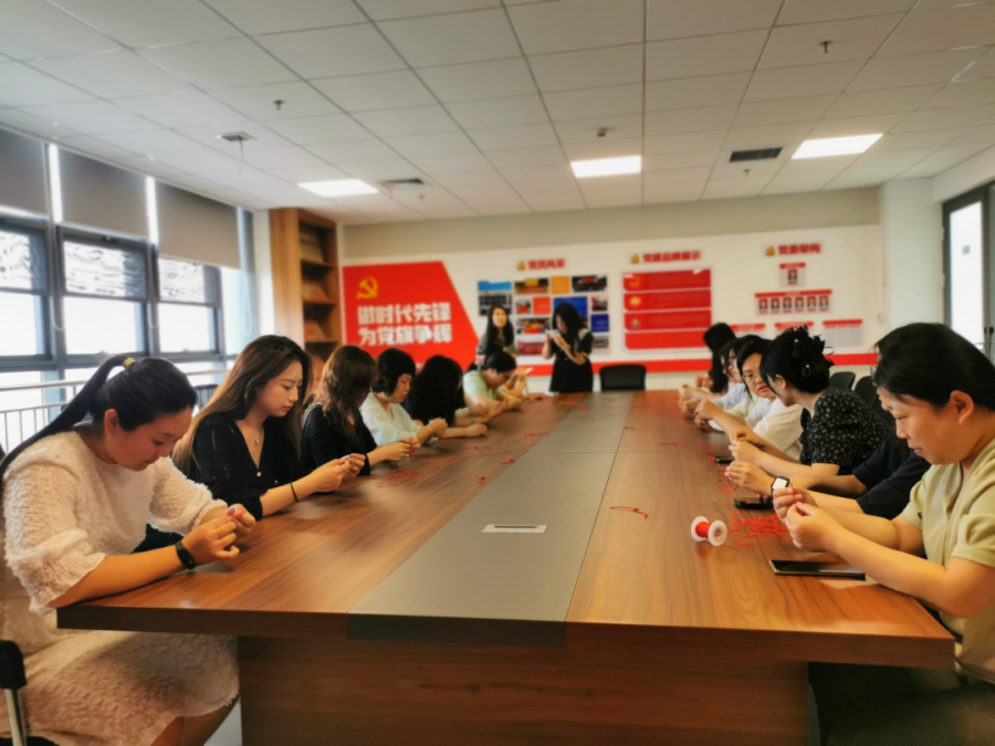 佩戴五彩繩有祈福納吉、保佑健康平安的美好寓意。彩繩繽紛,彩線輕纏,拉緊、搭線、繞線、打結(jié),職工們由生澀到熟練,靈巧的手指穿插不停,五彩斑斕的絲線在指間纏繞翻飛,現(xiàn)場(chǎng)氣氛溫馨愉悅。