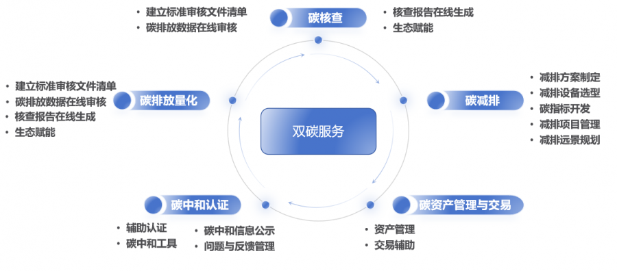 一是碳咨詢與治理。提供全面的碳排放管理解決方案,在碳排放源識(shí)別、碳排放量量化、減排目標(biāo)和策略制定、減排措施實(shí)施和監(jiān)督、碳足跡評(píng)估、碳中和路徑規(guī)劃以及碳管理體系建設(shè)等方面,為企業(yè)提供全方位的碳治理支持。