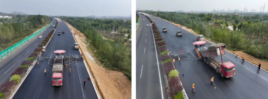 本試驗段在左幅K752+600-K752+900段開展,全長300米。施工團隊采用了先進的大寬度攤鋪機,一次性完成攤鋪,確保了上面層的整體性,并顯著提升了路面施工質量。在施工前,項目部精心編制了詳細的上面層施工方案,并對施工隊伍進行了嚴格的三級安全技術交底。同時,對原材料質量進行了嚴格把控,并通過科學驗證確定了生產(chǎn)配合比。在施工過程中,項目團隊嚴格按照施工方案執(zhí)行,確保了攤鋪施工的壓實度、平整度、寬度均符合規(guī)范要求。