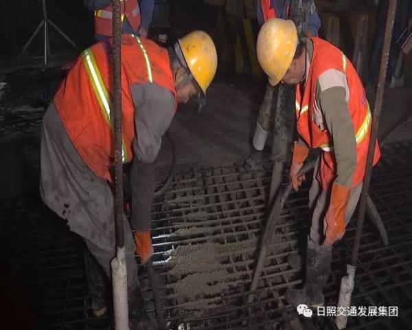 12月2日晚,濃霧厚重的夜色里燈光閃爍,204國道繞城改建工程上跨日蘭高速分離立交橋工地上機(jī)械轟鳴,工作人員在自己的崗位上緊張而有序的工作著。晚上七時(shí)許,隨著最后一塊箱梁澆筑完畢,204國道繞城改建工程上跨日蘭高速分離立交橋正式合龍,為204國道繞城改建工程按期順利通車奠定了堅(jiān)實(shí)基礎(chǔ)。