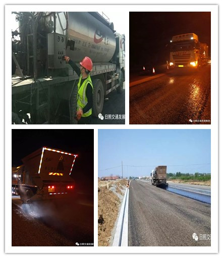↑材料公司瀝青灑布團(tuán)隊(duì)在廈門路、潮河蓮海大道等現(xiàn)場加班加點(diǎn)作業(yè)。