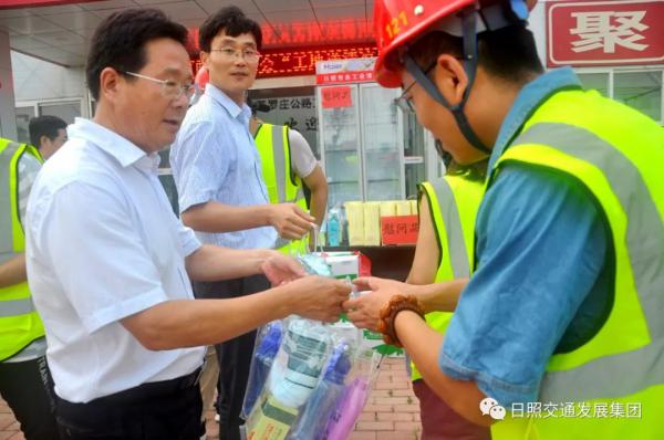 活動(dòng)現(xiàn)場(chǎng),李主席一行為高溫堅(jiān)守在崗位的職工送來(lái)了冰柜、水杯、香皂等防暑降溫必備品,在聽(tīng)取了嵐羅高速項(xiàng)目的工程進(jìn)展情況后,對(duì)集團(tuán)員工不畏高溫、堅(jiān)守崗位的精神表示肯定和感謝,并叮囑他們要注意降溫防暑,保障安全作業(yè),發(fā)揚(yáng)勞模精神,以更加飽滿(mǎn)的熱情投入到建設(shè)中。