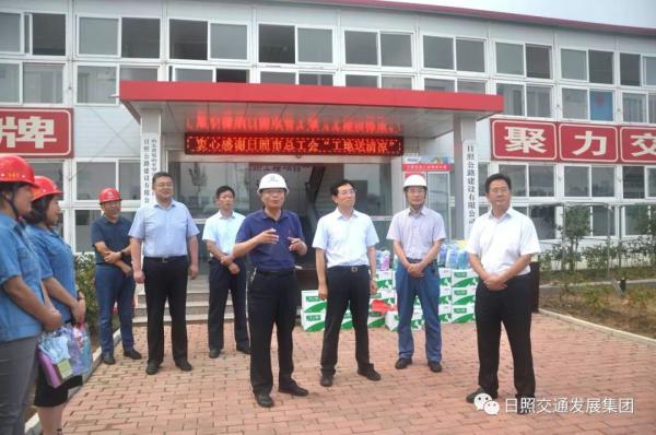 近日,日照市人大常委會(huì)副主任、市總工會(huì)主席李崇禧,市總工會(huì)黨組書(shū)記、常務(wù)副主席李登來(lái),市總工會(huì)副主席李國(guó)棟一行到集團(tuán)嵐羅高速虎山項(xiàng)目部,慰問(wèn)高溫期間奮戰(zhàn)在一線的建設(shè)者。集團(tuán)黨委書(shū)記、董事長(zhǎng)金立柱,副總經(jīng)理林棟陪同活動(dòng)。