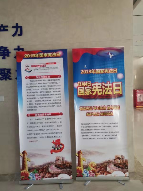 在集團(tuán)辦公樓電子顯示屏、電梯出入口等處,設(shè)置宣傳欄、懸掛憲法宣傳條幅、張貼宣傳標(biāo)語,宣傳憲法知識。各子公司積極組織干部職工觀看法制宣傳視頻,促進(jìn)憲法知識入腦入心。