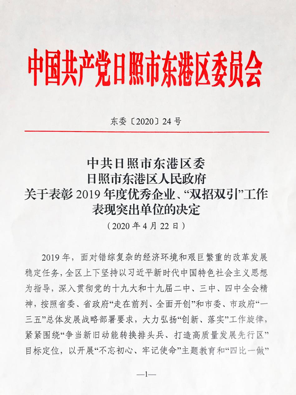 4月22日,東港區(qū)召開區(qū)委經(jīng)濟(jì)工作暨重點(diǎn)工作攻堅(jiān)動(dòng)員會(huì)議。會(huì)上對(duì)2019年度優(yōu)秀企業(yè)、“雙招雙引”工作表現(xiàn)突出單位進(jìn)行表彰,建設(shè)公司榮獲經(jīng)濟(jì)發(fā)展貢獻(xiàn)獎(jiǎng)。