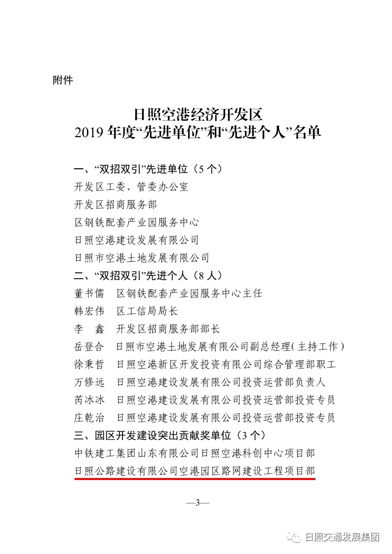 5月7日,日照空港經(jīng)濟開發(fā)區(qū)“雙招雙引”暨重點工作攻堅動員會議召開,建設(shè)公司空港園區(qū)路網(wǎng)建設(shè)工程項目部被授予2019年度日照空港經(jīng)濟開發(fā)區(qū)園區(qū)開發(fā)建設(shè)突出貢獻獎。