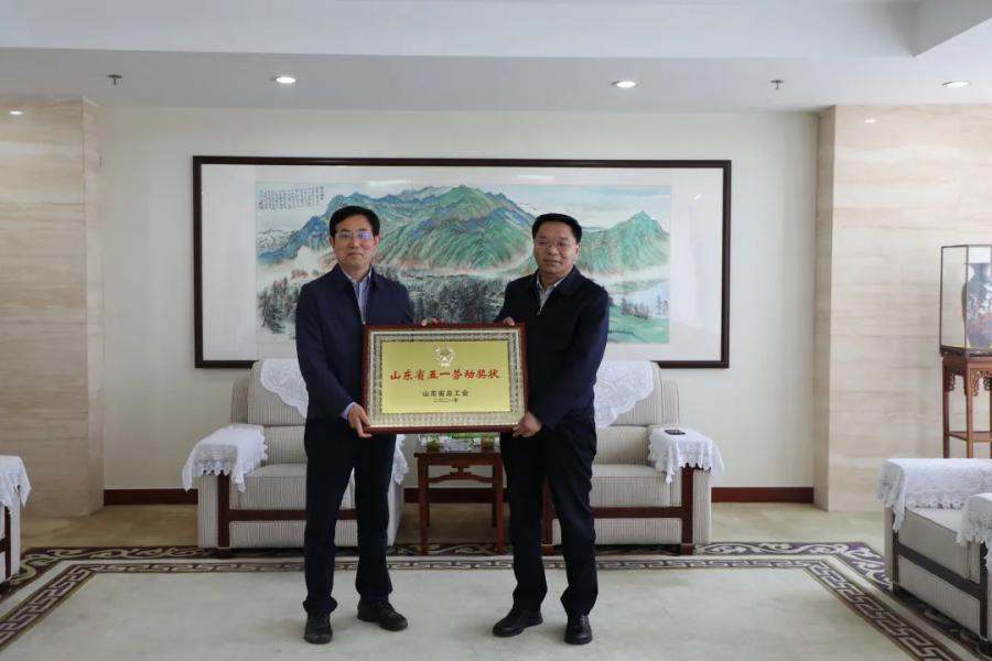 5月13日,市人大常委會(huì)副主任、市總工會(huì)主席李崇禧,市總工會(huì)黨組書(shū)記、常務(wù)副主席李登來(lái)一行蒞臨集團(tuán)指導(dǎo)工作,并為集團(tuán)頒發(fā)“2021年山東省五一勞動(dòng)獎(jiǎng)狀”獎(jiǎng)牌,集團(tuán)黨委書(shū)記、董事長(zhǎng)金立柱,黨委副書(shū)記宋文參加活動(dòng)。