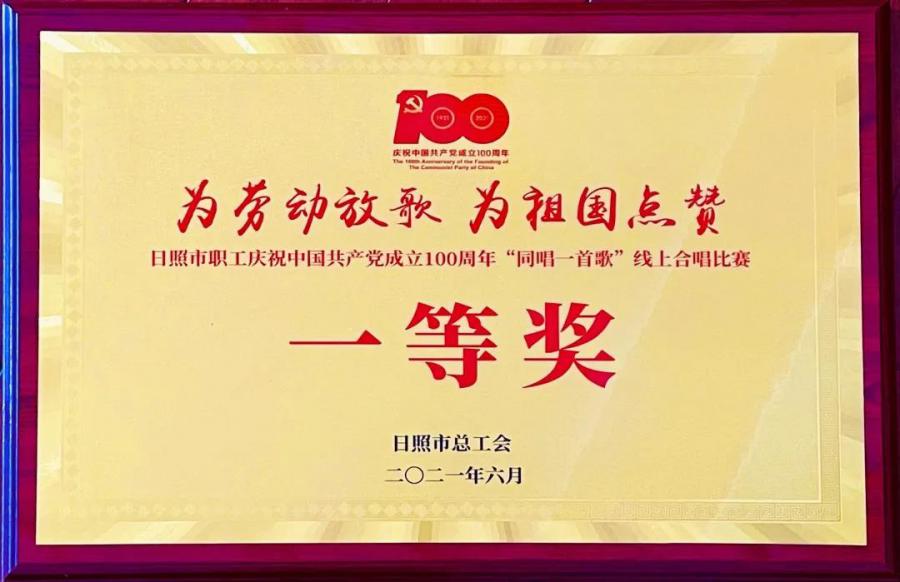 6月18日上午,全市職工“學(xué)黨史 感黨恩 頌黨情 ”主題閱讀分享會(huì)暨慶祝建黨100周年“同唱一首歌”活動(dòng)頒獎(jiǎng)儀式成功舉行,集團(tuán)榮獲日照市職工慶祝中國(guó)共產(chǎn)黨成立100周年“同唱一首歌”線(xiàn)上合唱比賽一等獎(jiǎng),并作為全國(guó)職工書(shū)屋示范點(diǎn)代表單位上臺(tái)領(lǐng)取“同唱一首歌”優(yōu)秀作品合集。