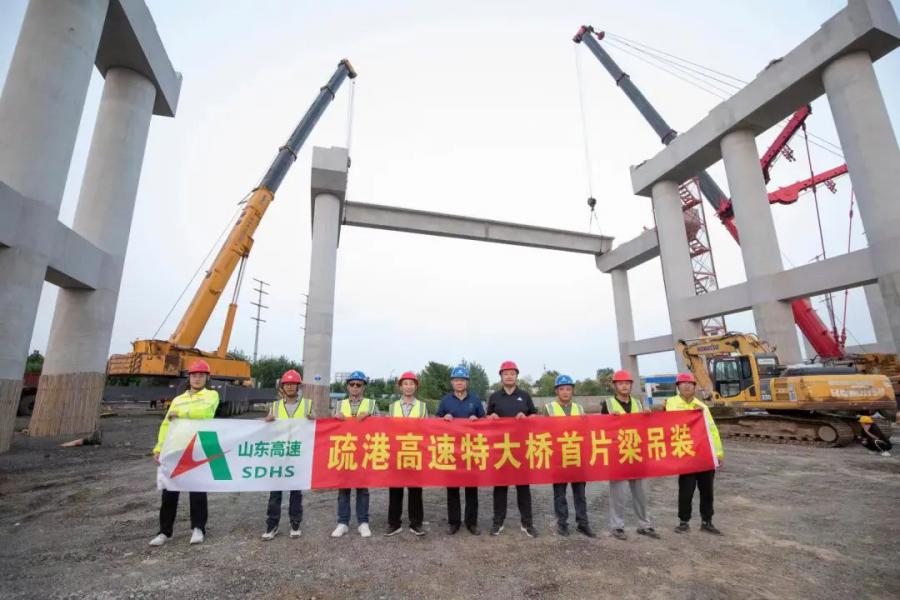 9月5日,集團(tuán)建設(shè)公司承建的日照港嵐山港區(qū)疏港高速公路ZK6+566/YK6+557.5特大橋工程首片箱梁順利完成架設(shè),標(biāo)志著特大橋工程進(jìn)入上部結(jié)構(gòu)施工階段。