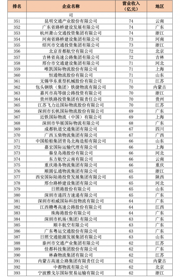 據(jù)悉,“中國交通500強(qiáng)”企業(yè)榜單統(tǒng)計(jì)范圍覆蓋鐵路、公路、水路、民航、管道多種運(yùn)輸方式,以及交通工程、投資運(yùn)營、交通運(yùn)輸工具和裝備制造、運(yùn)輸物流、研究咨詢?cè)O(shè)計(jì)、智慧交通等各個(gè)領(lǐng)域,統(tǒng)計(jì)對(duì)象為注冊(cè)地在中國境內(nèi)的、主營業(yè)務(wù)為交通運(yùn)輸?shù)莫?dú)立法人企業(yè)。
