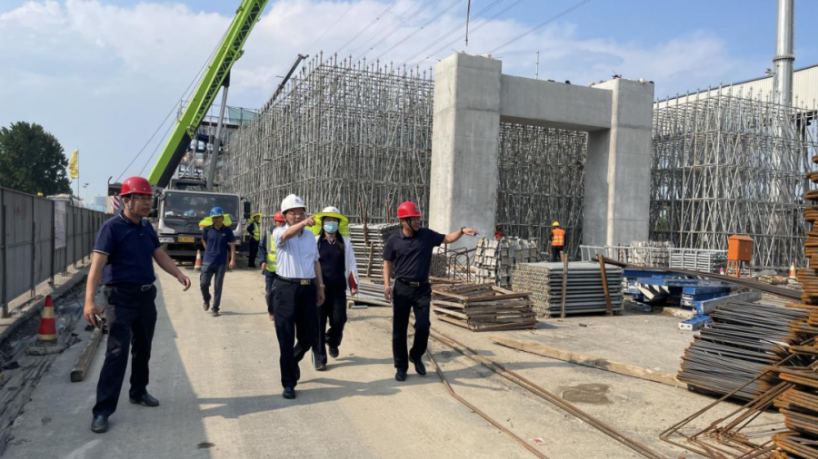 6月12日,集團(tuán)黨委書記、董事長(zhǎng)金立柱督導(dǎo)南沿海公路日鋼段高架工程建設(shè)。