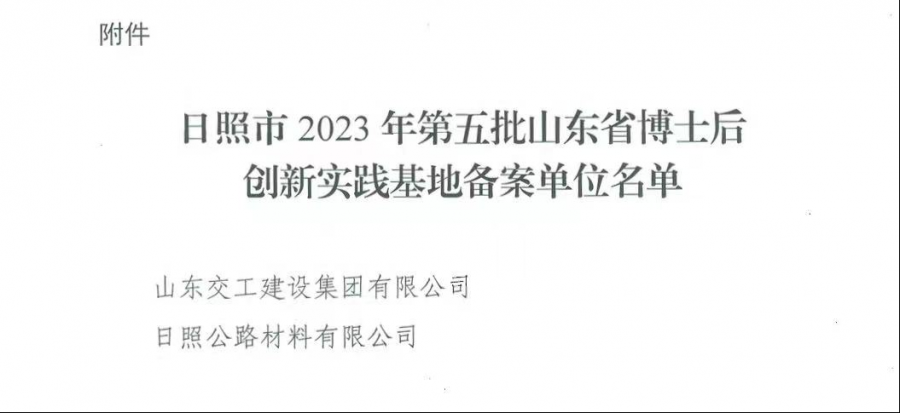 9月1日,日照市人社局發(fā)布公告,確定山東交工建設(shè)集團(tuán)有限公司、日照公路材料有限公司2家公司為日照市2023年第五批山東省博士后創(chuàng)新實(shí)踐基地備案單位。