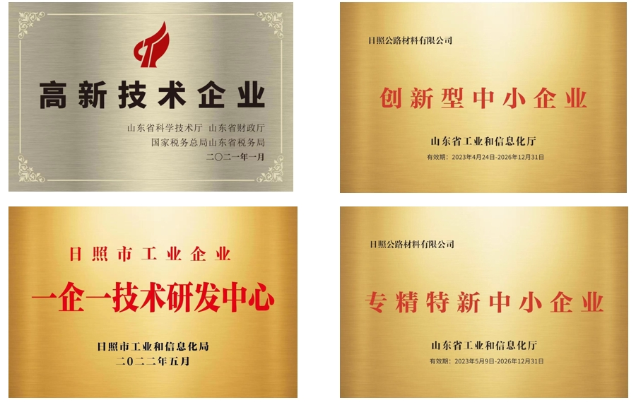近三年來,公司緊跟行業(yè)發(fā)展和市場需求的變化趨勢,不斷推進(jìn)新產(chǎn)品研發(fā),持續(xù)提升核心競爭力,先后自主研發(fā)量產(chǎn)了新型SBR、SBS改性乳化瀝青、廠拌冷再生專用SBS改性乳化瀝青、高粘高彈改性瀝青等一系列產(chǎn)品,在廣西天巴高速、青島西海岸市政工程、臨沭S225及各類城市道路項(xiàng)目中得到廣泛應(yīng)用,先后獲評(píng)日照市“一企一技術(shù)”改性瀝青研發(fā)中心、山東省創(chuàng)新型中小企業(yè)、山東省專精特新型中小企業(yè)、國家高新技術(shù)企業(yè)等榮譽(yù)。