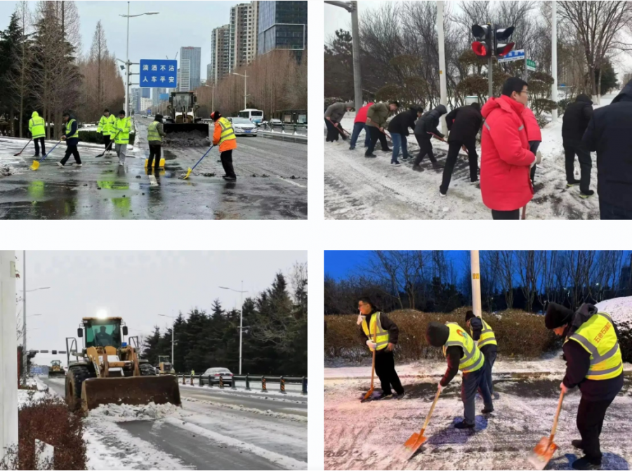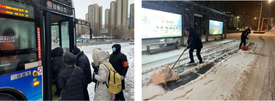 1月31日夜間,集團到各公司開展應急值班值守及清雪物資儲備督導檢查;2月1日凌晨4:50,集團接到市城市防雪應急指揮部的清雪除冰通知后,根據《日照交通能源發(fā)展集團有限公司2023-2024年度清雪除冰工作方案》任務分工,迅速響應,凌晨5:00,首支應急作業(yè)隊伍到達山海路與青島路責任包保路段開展清雪除冰作業(yè),凌晨5:45左右,17支應急作業(yè)隊伍開始大規(guī)模對山海路(日照路-青島路),青島路(海曲路-山海路)責任路段主、輔路及公交站亭進行人工、機械清雪,全力保障道路暢通和市民出行安全。