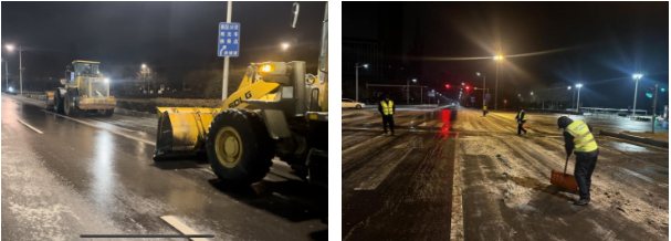 受強(qiáng)冷空氣和暖濕氣流共同影響,2月20日15時(shí)至23時(shí),我市出現(xiàn)凍雨、冰粒天氣,氣象臺(tái)接連發(fā)布大風(fēng)黃色預(yù)警、寒潮藍(lán)色預(yù)警、暴雪黃色預(yù)警和道路結(jié)冰橙色預(yù)警,給廣大市民出行帶來(lái)不便,對(duì)道路安全通行帶來(lái)諸多隱患。集團(tuán)第一時(shí)間啟動(dòng)應(yīng)急預(yù)案,以高標(biāo)準(zhǔn)和嚴(yán)要求,全面開(kāi)展保安全、保暢通、保服務(wù)的清雪除冰大作戰(zhàn)。截至目前,共出動(dòng)應(yīng)急人員880余人、清雪除冰機(jī)械車輛90余臺(tái),使用融雪劑134噸、使用防滑沙(料)960立方,確保全市普通國(guó)省道公路和市區(qū)包保路段安全暢通。