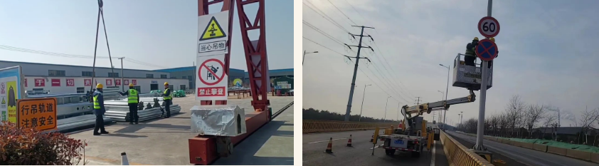 節(jié)后開工當(dāng)天,交安設(shè)施加工基地對(duì)所有生產(chǎn)設(shè)備進(jìn)行清潔、潤滑、緊固,及時(shí)進(jìn)行檢修和更換,確保設(shè)備的正常運(yùn)轉(zhuǎn)。截至目前,完成G204國道上下匝道導(dǎo)向牌120套,對(duì)臨港園區(qū)標(biāo)志牌修復(fù)2處,制作橋梁單懸臂標(biāo)志牌5個(gè),橋梁銘牌25套,制作道口樁150套,示警樁170套,完成產(chǎn)值17萬元。