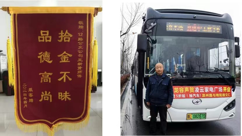 近日,駕駛員王新賢師傅在駕駛12路公交車執(zhí)行運營任務(wù)時,突然聽到車廂內(nèi)有手機鈴聲響起,發(fā)現(xiàn)在靠窗的一個座椅上“躺”著一部手機,王師傅立即與對方溝通,約定在“實驗四小”站點歸還手機。事后,曲女士制作了一面錦旗表示感謝。