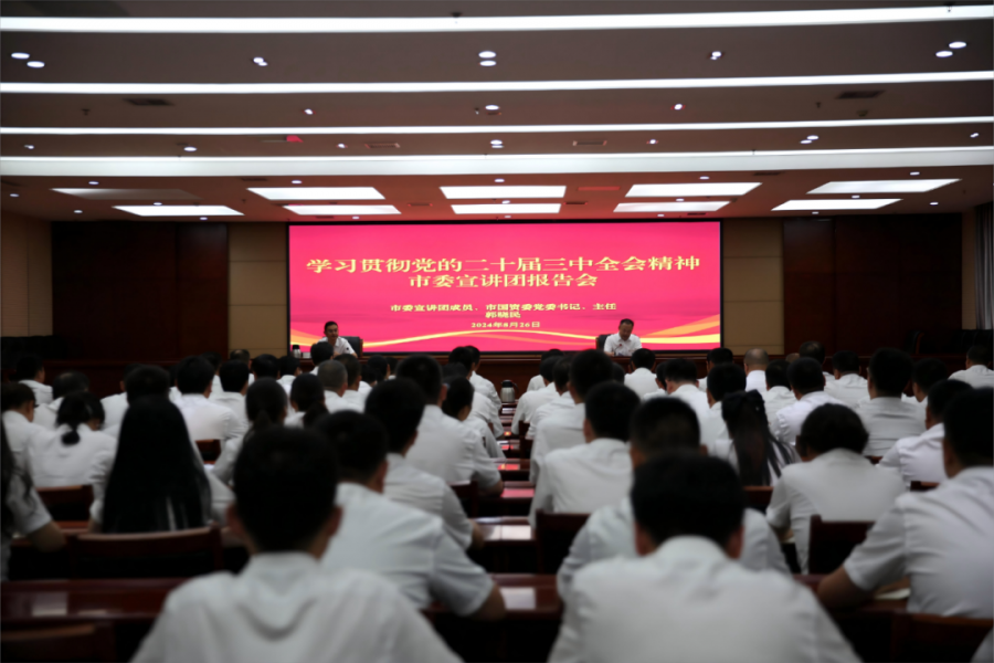 根據(jù)市委統(tǒng)一安排,8月26日下午,學(xué)習(xí)貫徹黨的二十屆三中全會精神市委宣講團(tuán)報告會在集團(tuán)舉行。市委宣講團(tuán)成員、市國資委黨委書記、主任郭曉民作宣講報告。