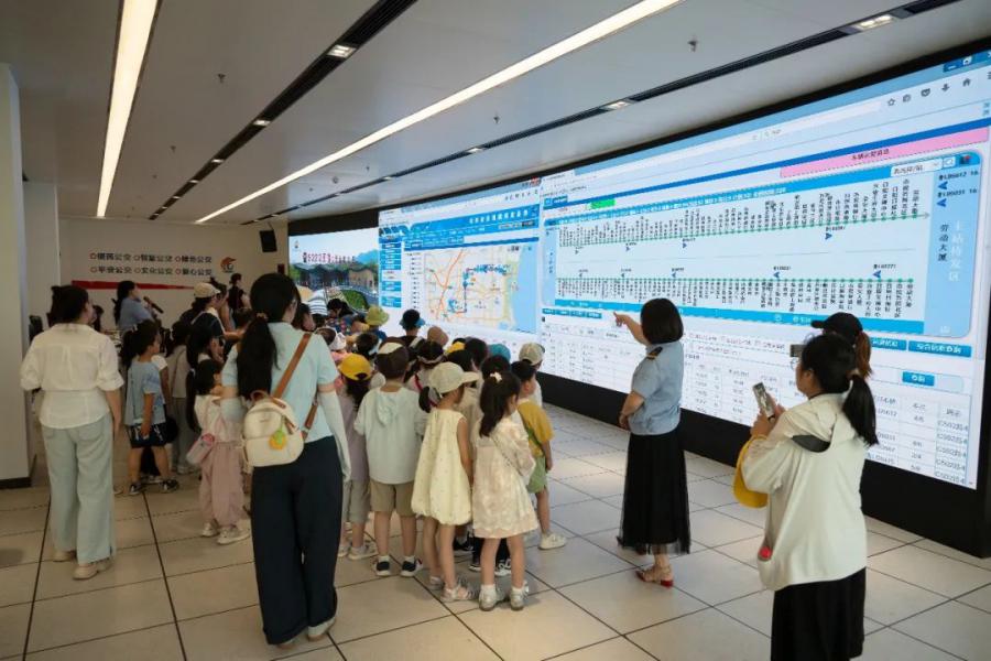 活動(dòng)中,為萌娃們播放交通安全教育警示視頻,寓教于樂,萌娃們通過生動(dòng)的畫面和真實(shí)案例,真切感受到安全出行的重要性,更加認(rèn)真學(xué)習(xí)公交安全乘車注意事項(xiàng)。隨后,大家來到公交調(diào)度中心,講解員詳細(xì)介紹了公交車輛調(diào)度、運(yùn)行監(jiān)控等公交車有條不紊運(yùn)行的“秘密”,帶領(lǐng)萌娃們感受公交信息化給出行帶來的便利。