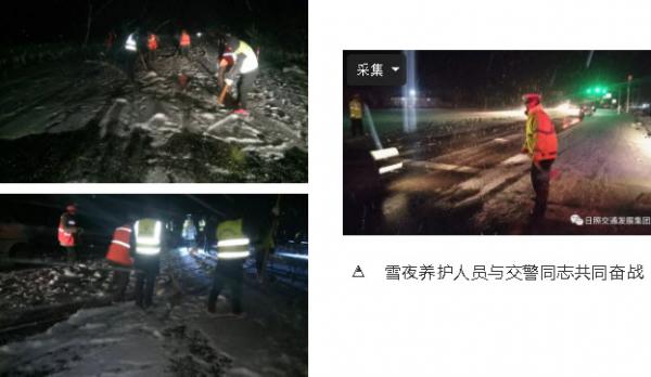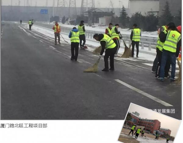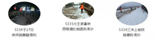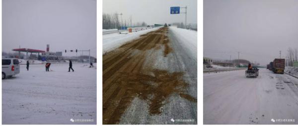 三是做好應(yīng)急物資儲(chǔ)備。加大與氣象、交警等部門溝通協(xié)調(diào)力度,加強(qiáng)挖掘機(jī)、裝載機(jī)等機(jī)械設(shè)備維修保養(yǎng),及時(shí)清點(diǎn)補(bǔ)充編織袋、防滑沙、融雪劑等應(yīng)急物資。隨著溫度的降低,1月28日清晨4點(diǎn),局部路段出現(xiàn)道路結(jié)冰現(xiàn)場(chǎng), 施工人員再次增撒融雪劑和防滑沙,增強(qiáng)組織力量鏟冰除雪。
